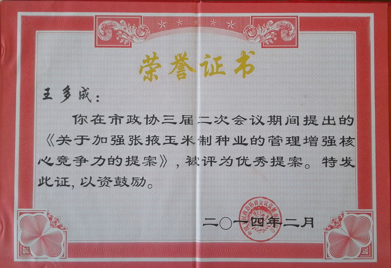 張掖市多成農(nóng)業(yè)有限公司是一家以玉米雜交種生產(chǎn)經(jīng)營(yíng)為主的農(nóng)業(yè)科技型民營(yíng)企業(yè)。公司由兩個(gè)種子加工廠和1個(gè)良種繁育基地及1個(gè)優(yōu)質(zhì)梨示范基地組成。加工廠占地15.8萬平方米,擁有種子加工線3條,檢驗(yàn)室2個(gè),年生產(chǎn)、加工能力2000萬公斤。有良種示范基地2000畝,優(yōu)質(zhì)梨示范基地500畝。固定資產(chǎn)總值超億元。